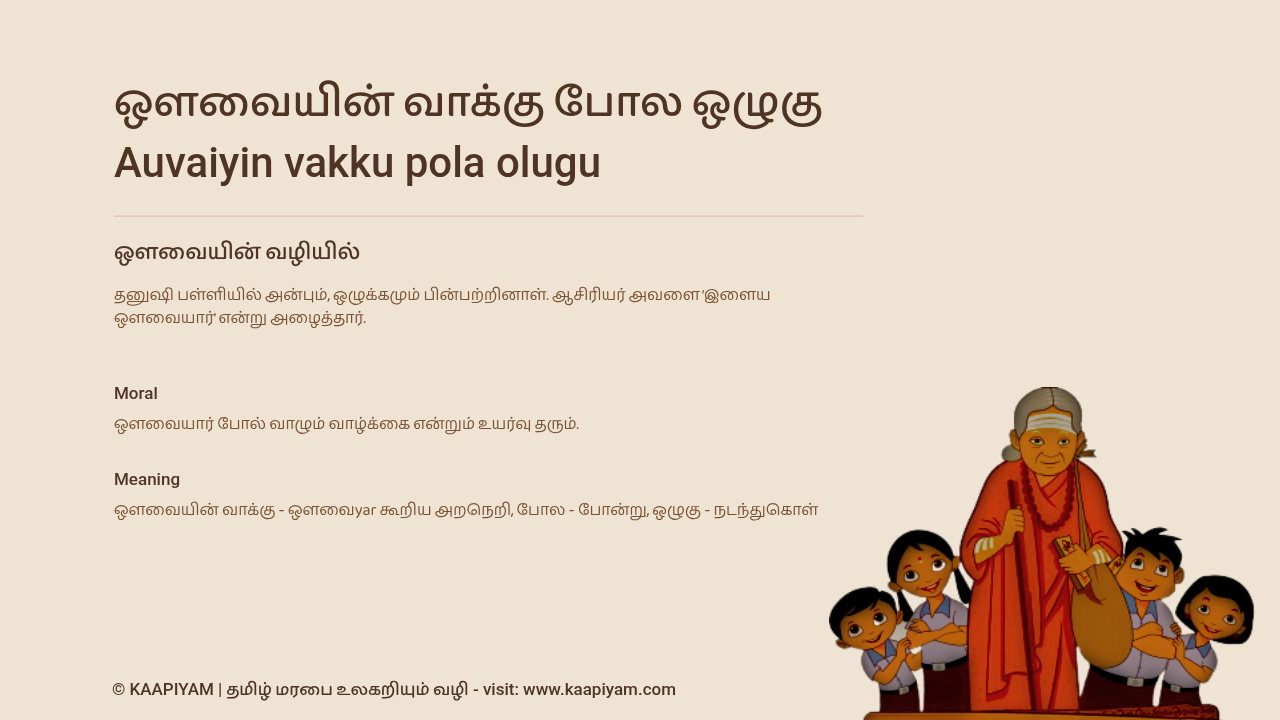 ஔவையின் வாக்கு போல ஒழுகு - Auvaiyin vakku pola ougu