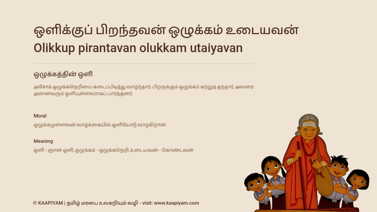 ஒளிக்குப் பிறந்தவன் ஒழுக்கம் உடையவன் - Olikkup piantava oukkam utaiyava