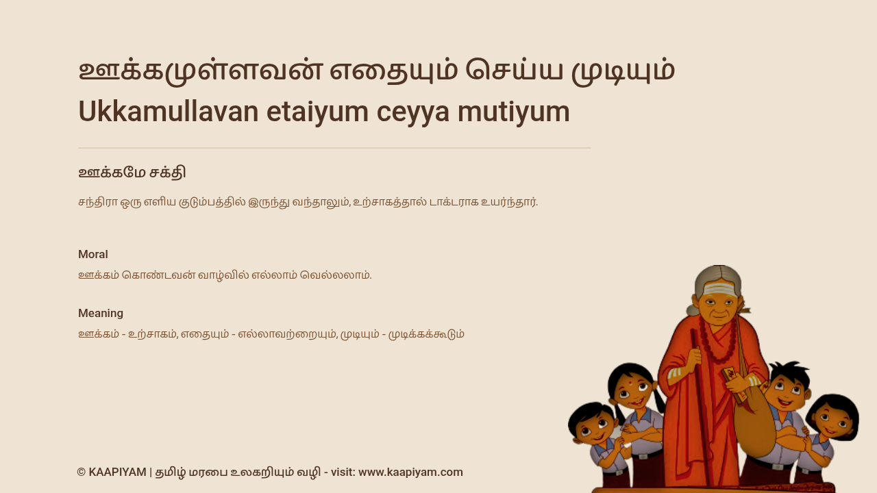 ஊக்கமுள்ளவன் எதையும் செய்ய முடியும் - Ukkamullava etaiyum ceyya mutiyum